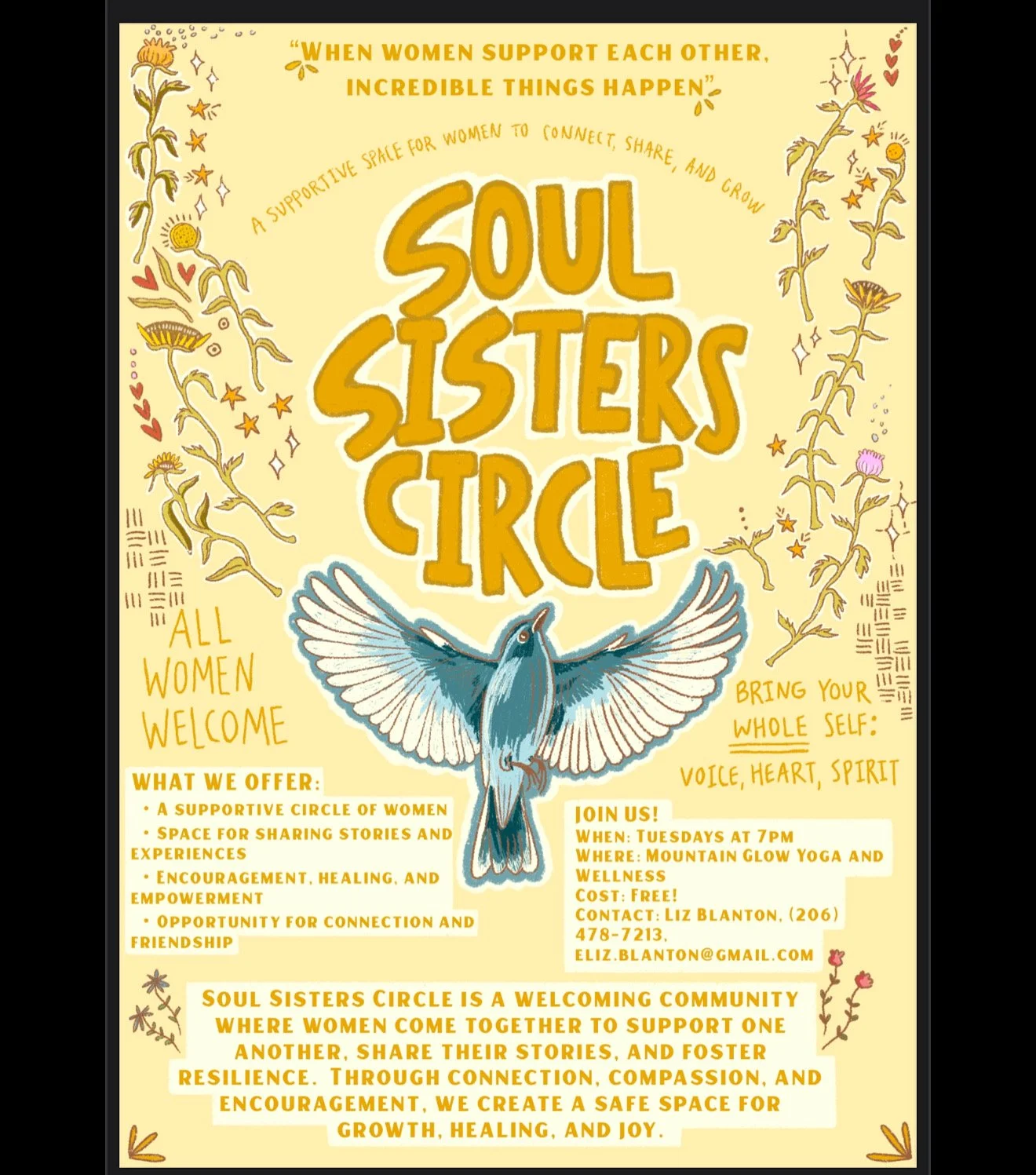 Soul Sisters Circle is a welcoming community where women come together to support one another, share their stories and foster resilience. Through connection, compassion and encouragement. We created a safe space for growth, healing, and joy.